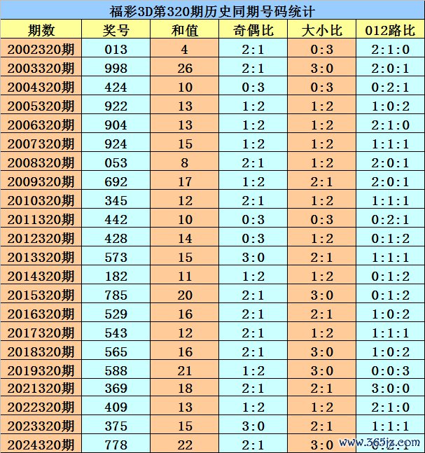 福彩3D第2025320期开奖日历:2025年11月30日,历史上第320期已开出了22次奖号,积年同时号码分手为:013、998、424、922、904、924、053、692、345、442、428、573、182、785、529、543、565、588、369、409、375、778。