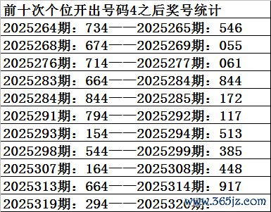 四、个位分析:上期开出号码4,前10次号码4出现之后下期同位号码为:6514273587,其中号码大小比为6:4,基本抓平;奇偶比为6:4,基本绝顶;012路比为2:4:4,0路号码发扬相对较冷。本期参考号码:9。